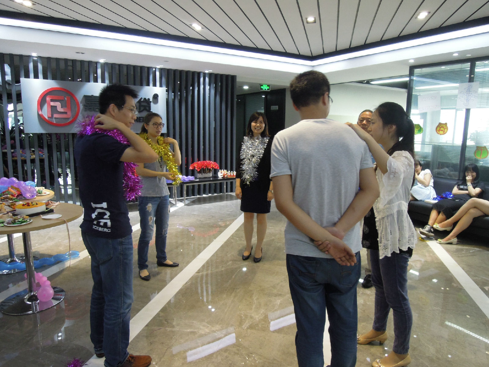 6月19日,艳阳高照,伴着初夏的清爽,在传统节日端午节来临之际,嘉驿小贷迎来了2015年二季度员工生日会。下午1点30分不到,各部门员工便陆续聚集在彩条、气球、美食布置的大厅,期待着美好时刻的开始。