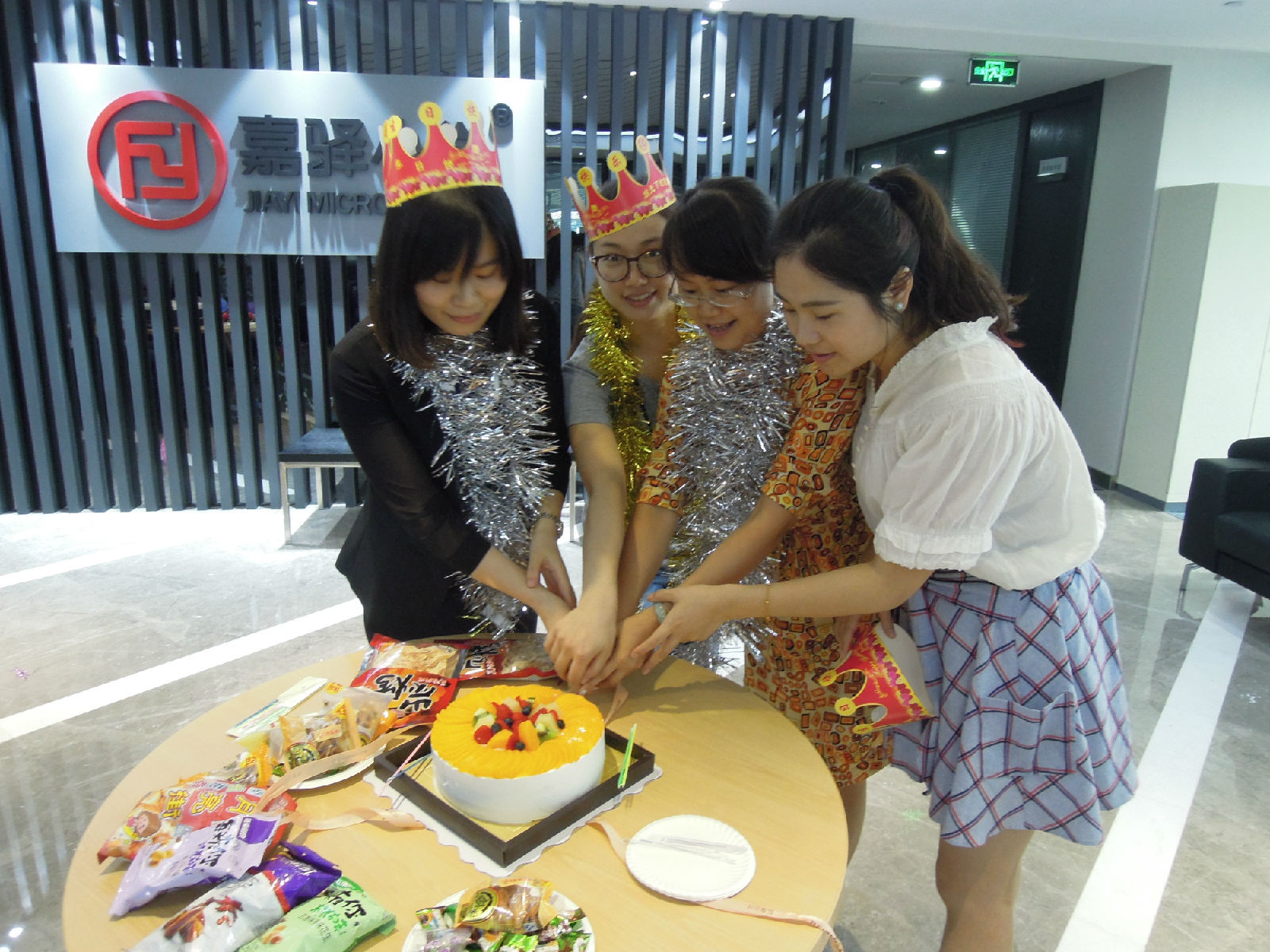 生日会上,主持人用幽默诙谐的方式一一请出了本季度在场的四位美女寿星。公司领导纷纷向各位寿星表示祝贺,然后由各自部门总监为她们派发了生日礼物并合影留念。