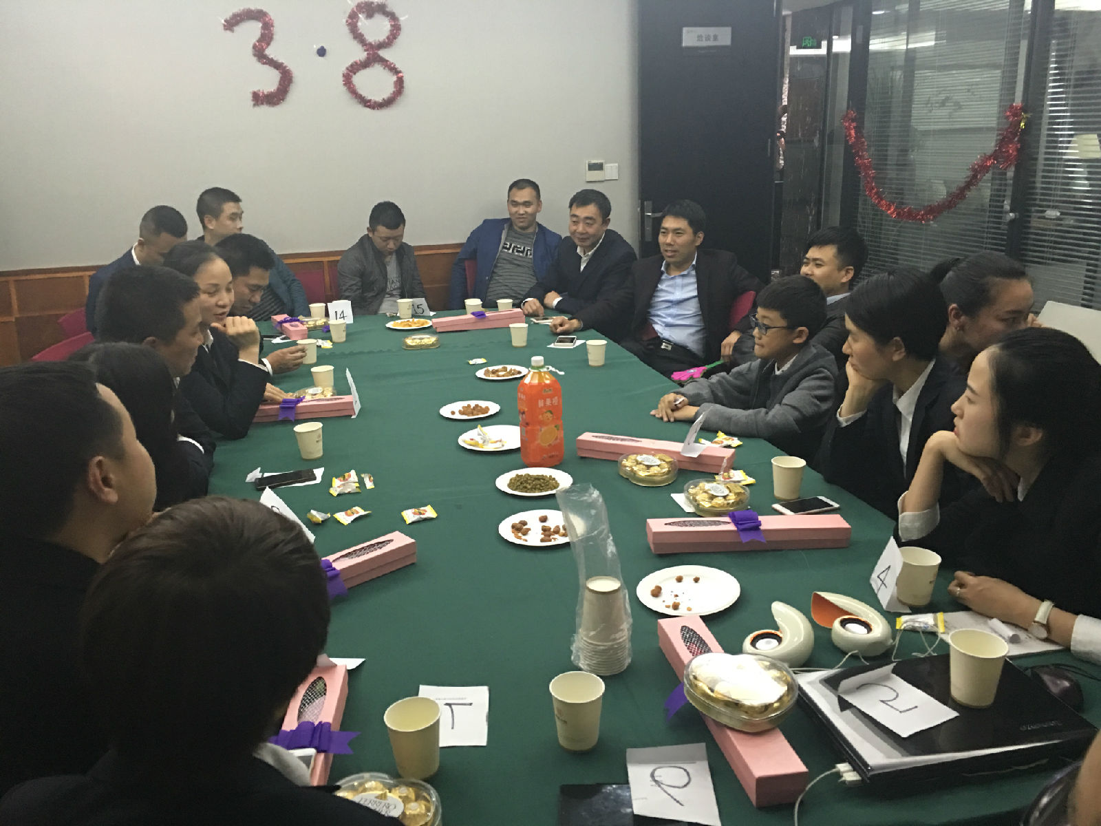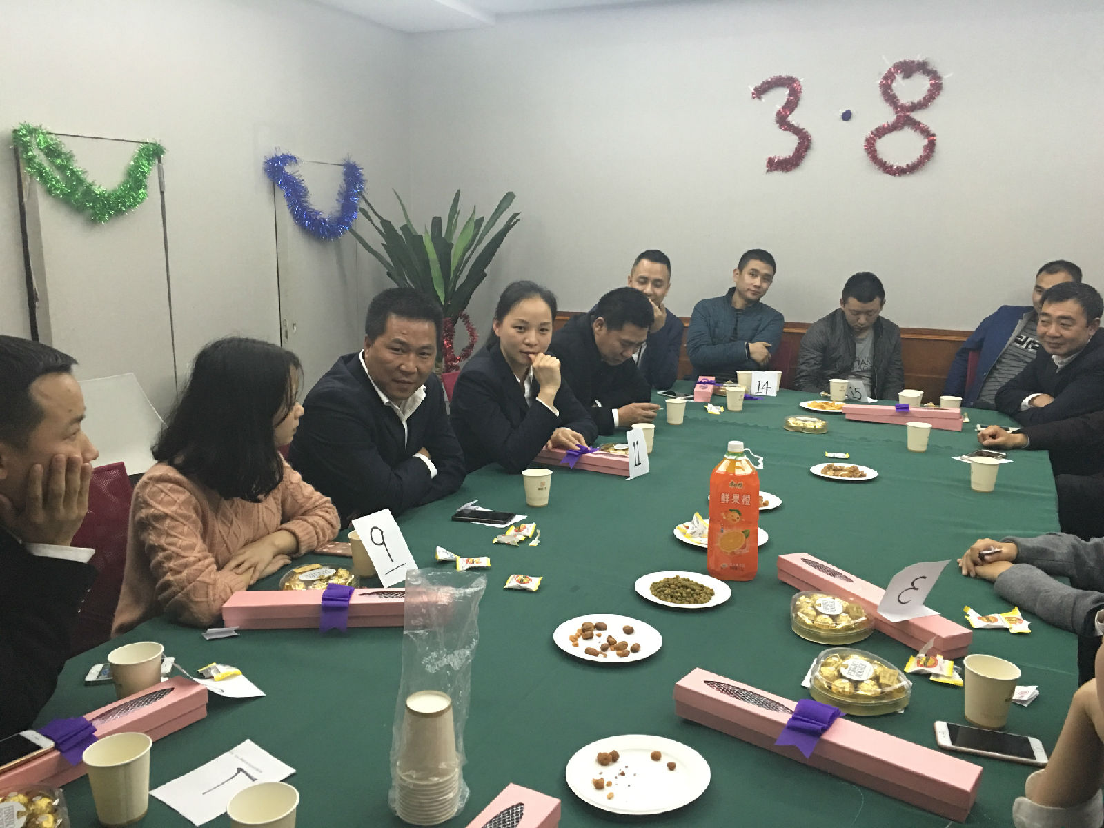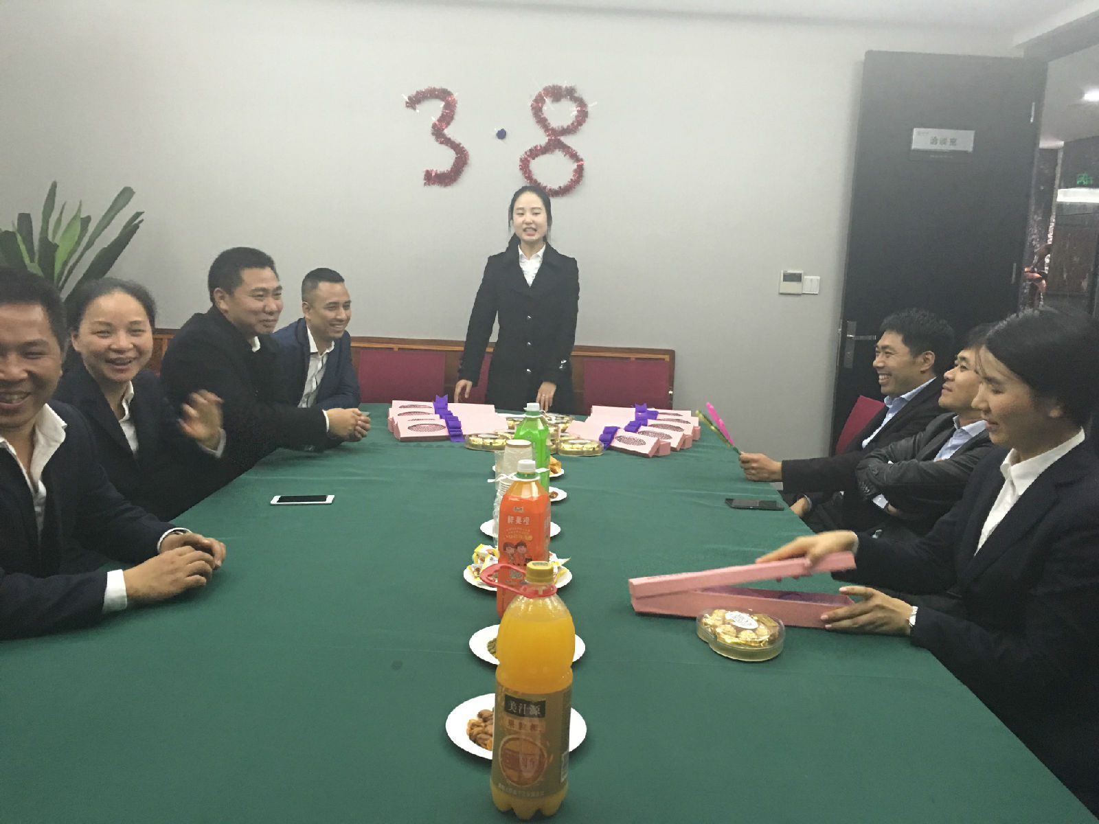 在这个属于女性的特别日子,公司领导向全体女员工致以节日的问候,并为她们送上精心准备的玫瑰花、巧克力及礼品表示节日的祝福,一朵朵美丽的鲜花映照着女员工们甜蜜的笑容,办公室顿时沉浸在温馨幸福的氛围中。紧接着,为了玩得尽兴,公司全体员工在洽谈室开展了一场脑力游戏——“狼人杀”,大家在游戏中担任各自的角色,好的一方与坏的一方通过个人的分析角逐胜利,每位员工在游戏中都发挥出自己独特的分析判断能力,激烈又紧张。最终,游戏由常务副总经理苟秀娟带领的“狼人”一方获得了胜利,赢取了奖品。